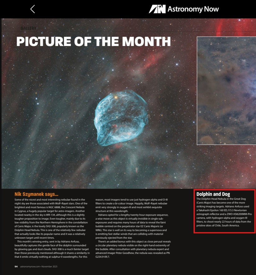 A selection of editorial and professional milestones and awards from my work in astrophotography.